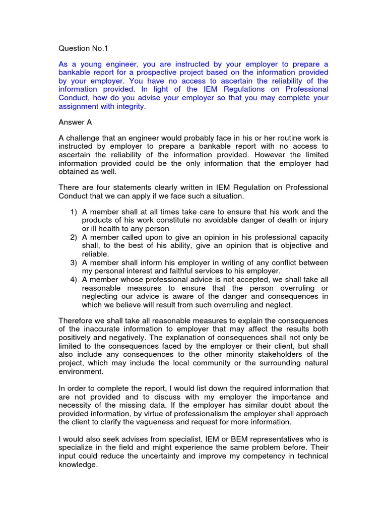 Bem Code Of Conduct Assessment For Professional Engineer Route 3
